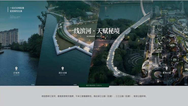 项目半径 1 公里范围内有一河三公园 。一河就是门口的江安河, 三公园分别是项目以南约500亩三江公园(在建)、项目以北约 192 亩骑龙中水湿地公园以及项目旁的江安河滨河公园 。三个公园建设完毕 后将串联组成一个巨大的城市绿肺。