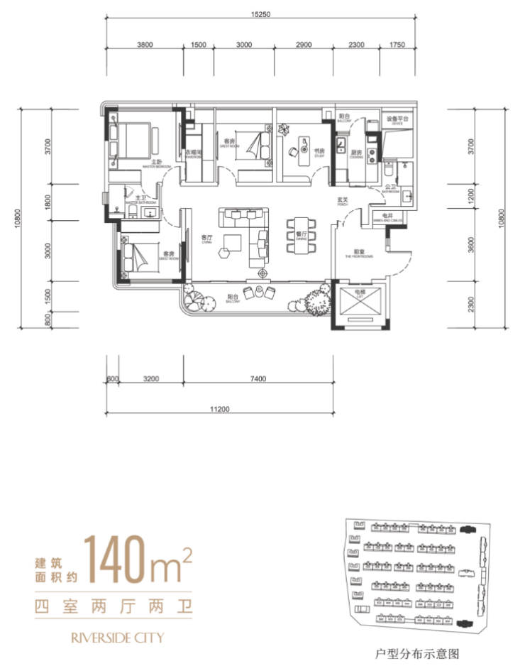 面积段:建面约174-325㎡江岸雅奢墅境 建面约129-159㎡天际阔景平层