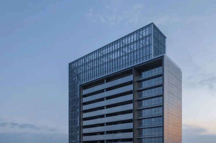 理由四:要颜值有颜值,要才华有才华的地标性顶豪项目。从金属铝板+大面积的玻璃幕墙,甚至连山墙都做了蜂窝铝板;到金属网幕墙遮蔽核心筒,建筑顶部高约10米的玻璃幕墙塔冠……在建筑立面、硬件配置上在顶豪圈里都算佼佼者。
