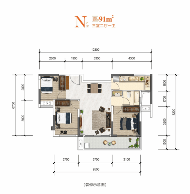 ✨建筑面积约91㎡ |三室两厅一卫✨精致舒居|极致数据,坐拥城市花园,尽享人生百态✨归家仪式|高级入户,归家仪式感与功能性兼具✨环绕赏景|突破传统边界,客厅卧室双阳台对接近6.8米长宽景阳台,最大限度保证采光和观景效果✨光影起居|全明卫套房,满足主人便捷居家所需