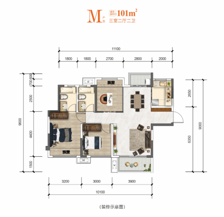 ✨建筑面积约101㎡ |三室两厅两卫✨楼下花园|超大花园景观,坐拥城市花园,尽享人生百态✨极致采光|南北通透一体化设计,优质采光✨阔尺套房|豪华主卧套房,设卫浴及步入式衣帽间,打破常规享受✨尊享入户|2T3,打破常规T4、T5设计,归家仪式感与功能性兼具✨场景阳台|双宽景阳台,休闲生活随意切换