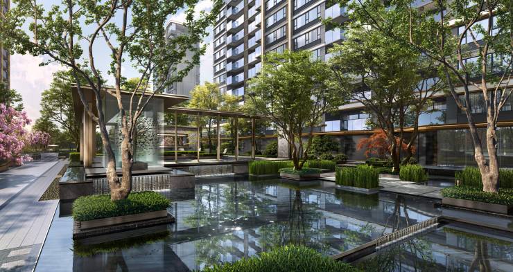 【6⃣ 东安湖四季酒店园林,生活如度假】以全球知名的曼谷四季酒店园林为灵感,融入水系的柔软感,为快节奏的繁华都市人们,崭别城市的喧嚣,汲取宁静的自然力量,栖心于城市的繁华之中,得到更好的放松与休憩。