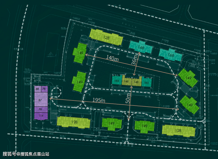 【户型图+实景小区+小区配套】东西楼间距在140-195米,南北是最短处是36米和58米,这样的空间布局,这样的大中庭和楼间距,是外光华其他新盘所不具备的。
