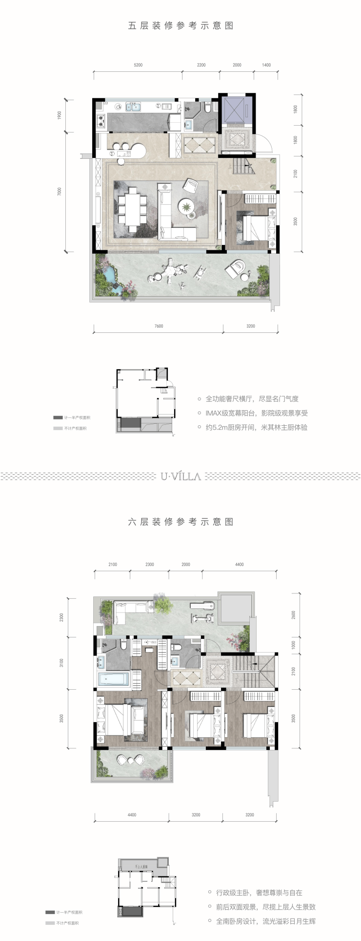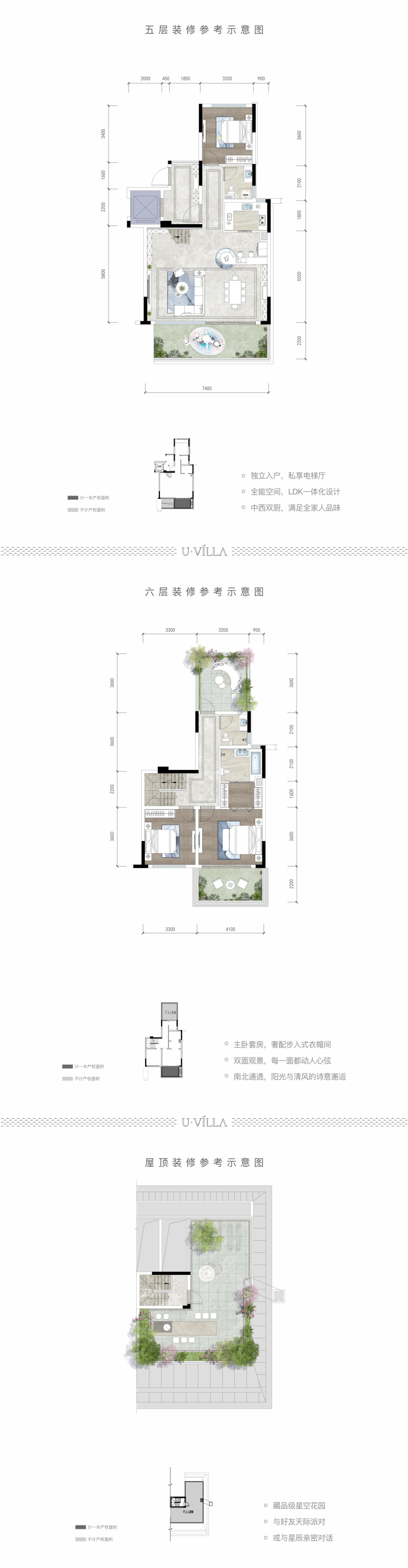 2. 空间尺度:3.1-3.6米层高,私家电梯入户,独栋级墅居体验