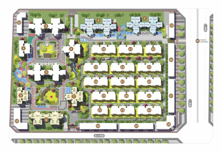 🌟【景观设计理念】✅ 一环:园区内设有一条300 米环形跑道,足不出家门即享轻氧人生✅ 两轴:归家主轴【银杏大道】和【蓝花楹大道】,徜徉在四季的浪漫中✅ 四园:全龄段专属主题场所“西园、辰园、御鹤园、童趣园” ✅ 五巷:依东方归家礼序,以春夏秋冬为景观载体,辅以名贵乔木花树,打造五条归家动线