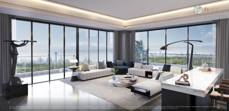 当代大平层先锋创著/用空间艺术缔造美学领域/私享双重入户系统南北通透,6.8⽶纵横多变双厅11.9⽶宽境阳台,尽享奢阔景观⾯