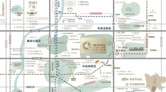 黄金板块交汇:项目地处天府新区三大核心功能板块的交汇点,既能享有中央商务区的繁华、法务区的产业势能,又能近享麓湖板块的优越生态,区位价值得天独厚,是 “天府新区的中心”。