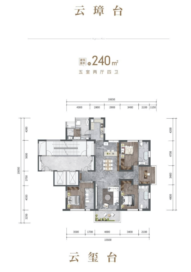 作为社区的旗舰户型,约280㎡的空间实现了居住尺度的再次飞跃,可轻松布局为六房。