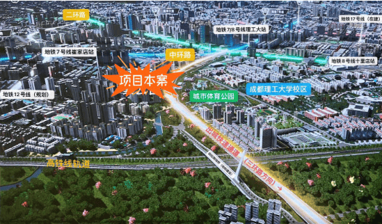 项目位于城东理工大学商圈与东郊记忆板块交汇处,是成都“中优”与“东进”两大城市战略的受益者。