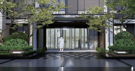 精奢酒店归家礼遇,以纽约安缦酒店为参考蓝本,打造归家礼序光庭质感超五星酒店入口,大量金属线条加温德姆灰Wyndham高奢真石材大理石形成以尊贵礼序凸显的豪宅气度