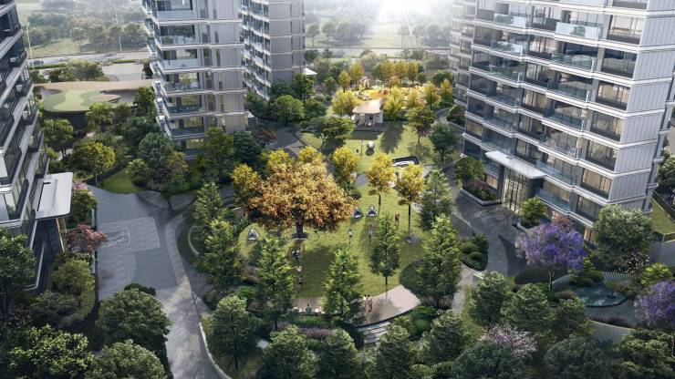 南面228亩景观带、西面约7000㎡银杏公园、北面75亩梵谷公园,三公园环绕,环氧畅享绿境;直面1.5万亩三圣乡公园,头排景观,极佳视野