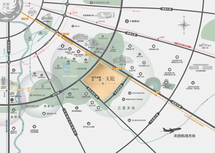 天琅择址于三圣乡东,依托轴心优势和地铁13号线,与锦宸院等众多顶壕一站联通,共享城市高端配套,启幕3KM超配生活圈