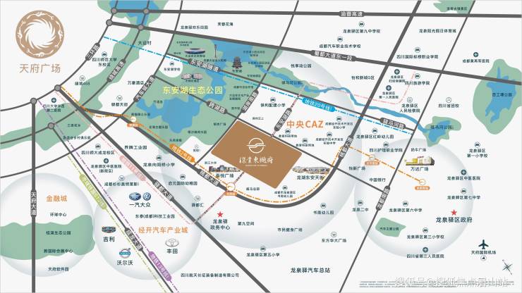 交通:蜀都大道/驿都大道/桃都大道等四横三纵主干道、地铁2号线(已运营)/22号线(规划中)/25号线(规划中)/11号线(规划中)等四大轨道交通、K6/K7等两条快速公交
