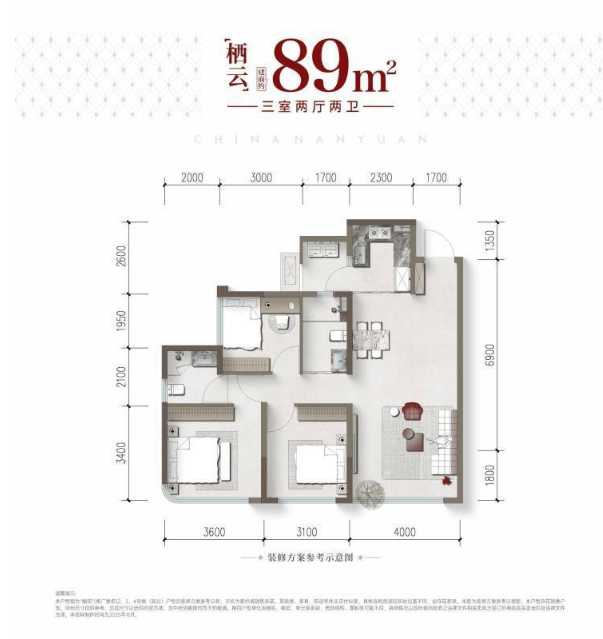 建面约89㎡ 紧凑三房双卫