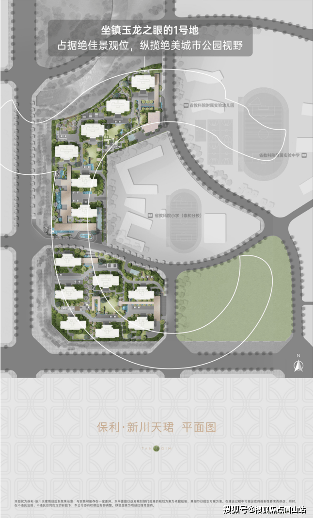 ▌用地之琢磨 » 78亩天赋之地,形似玉龙盘桓整体规划以自然主义设计,打造容积率约2.5的“绮丽隐奢"之境;建筑总平历经百余次推敲研讨,创新排布,让每一栋每一户最大化享受景观资源。
