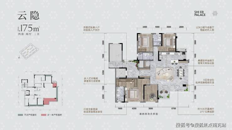 在户型设计上,中铁拾贰宸同样亮点纷呈。建面约129㎡的户型以四房两厅双卫的布局,提供了宽敞的居住体验。开敞式私梯入户和全明入户花园设计,不仅提升了归家的仪式感,还额外提供了生活物品的收纳空间。建面约143㎡的户型则进一步强化了居住的奢华感,通过超大花园入户光厅和一体化豪奢横厅,为业主提供了广阔的生活空间。而建面约175㎡的户型更是堪称典藏级楼王,以其270°无界视野和约14米环幕端厅,展现了极致的观景体验。
