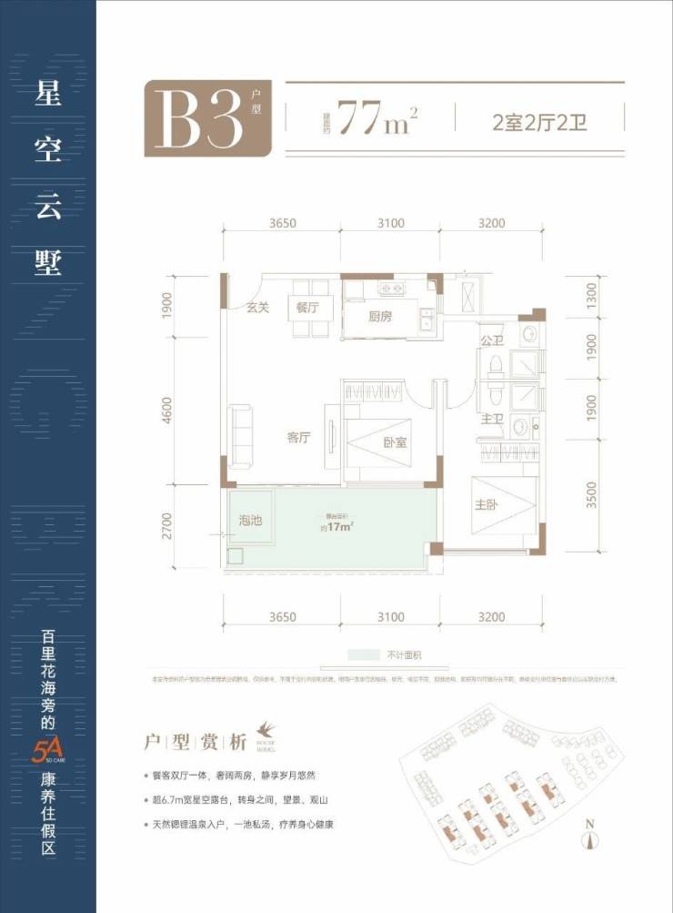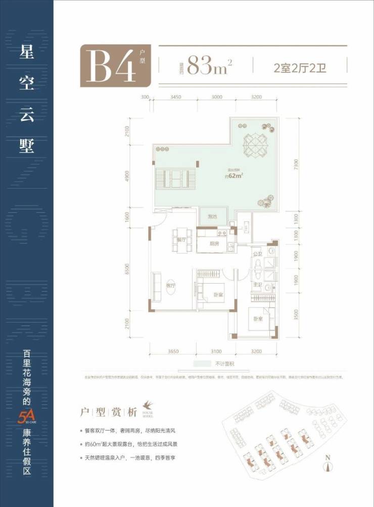 ②星空叠墅建面 69-93㎡,实得 125-185㎡,户户带入户花园,精装总价 72 万 - 110 万,适合三口之家中长期康养;