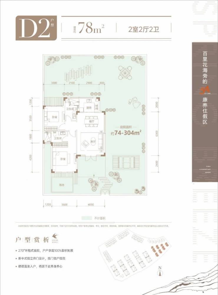 ③春风合院建面 78-84㎡,实得 180-360㎡,独门独户,总价 130 万 - 160 万,适合多代家庭共同度假居住。