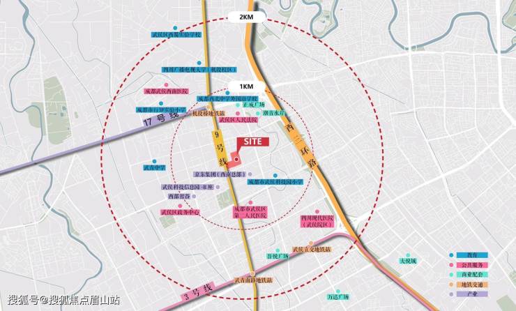 立体交通脉络 形成了三环两纵四轨的立体交通。在西3.5环的位置上,离3环路直线仅有约600余米;周边3、7、9、17号线交织,轨道网络密度超过成都多数楼市板块。距离9、17号线换乘站机投桥站直线距离仅有约715米,9号线可直达金融城,17号线二期(在建)贯穿连通成都多个主城板块,便捷度很高。