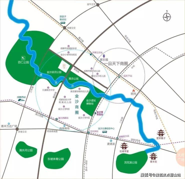 成都金沙宸宇公馆毗邻211亩金沙滨河公园及46亩黄忠公园,两公里范围内环绕1700亩百仁公园、456亩金沙遗址公园、摸底河等稀缺自然生态资源,真实还原“一河四公园,一府揽金沙”的自然生态美景。