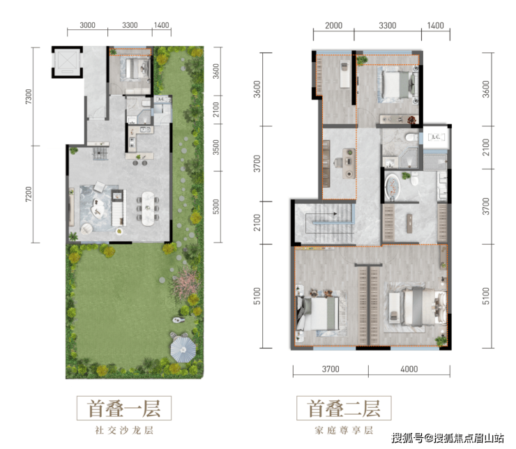 1、赠送率高达210%2、板式结构,南北朝向3、7.7*7.2M的方厅带4.2M的阳台4、首层面积116㎡,二楼起居室112㎡,星空花园90㎡
