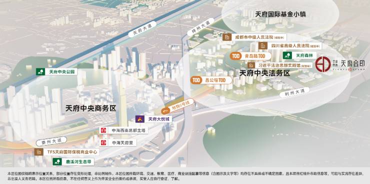 产业加持:首个中央法务区,高端产业资源加持天府前湾落位全国首个中央法务区,吸引省高院、市中院等政法机构入驻,构建全维度高端法律服务体系。