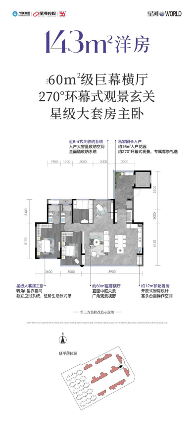 星河九墅定位纯粹改善,产品线由阔景洋房与稀缺叠墅构成,以大面积段和奢适空间,满足高端家庭的终极改善需求。