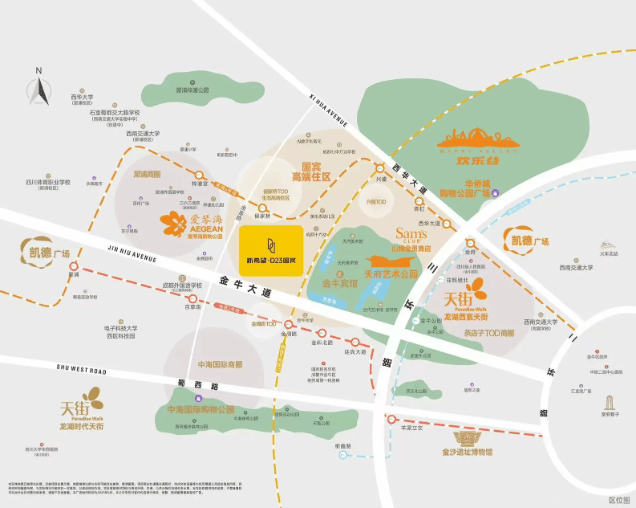 立体交通路网:项目邻近地铁6号线站点,并快速链接金牛大道、蜀西路、西华大道等多条城市主干道,形成四通八达的出行网络。