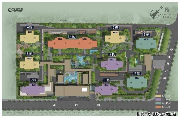 而与大多数阵列式布局不同的是,项目结合南向入口和小区中轴,还规划了一个约5500㎡的中庭景观,这在阵列式布局的规划中是比较少见的,让每一户都能拥有南向主景观的同时,也兼顾了购房者们都爱的中庭园林。