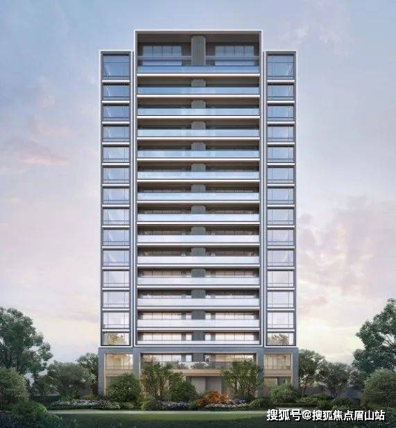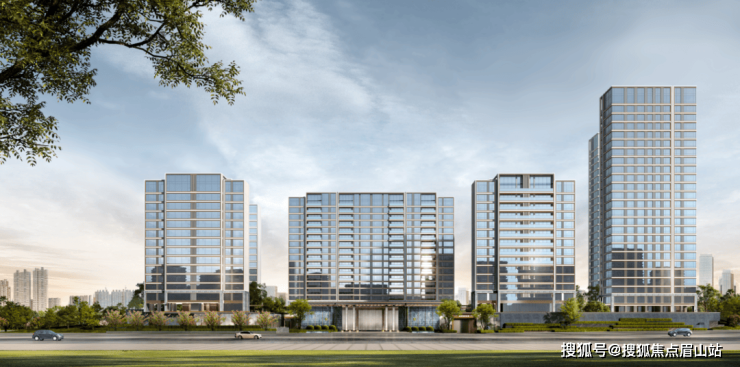 但简约并不代表简单,越是简单的东西想要体现质感就越难。所以从实景呈现的建筑立面上我们看到,整体采用了一体化的设计,以浅蓝色玻璃为主体,将景观阳台和外墙也用玻璃幕墙进行了整体拉通,再辅以金属线条以及色度相近的石材、真石漆,让整个建筑立面看起来既挺拔又高级。