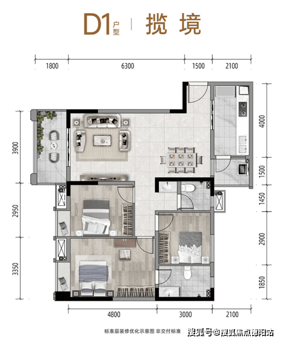 建面信息:建面约86 / 91 /116㎡ 套三双卫