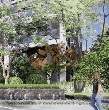 该项目保持着较高的绿色资源占有,打造出约300米的景观中轴以及约400米全龄运动跑步环,串联起三处景观庭院(约1600㎡度假式花园会所、约800㎡儿童主题乐园、约1000㎡私家健身会所)。