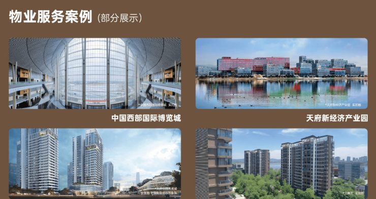 业务涉及物业管理、停车管理、生活服务、餐饮服务等多个领域。物业管理项目涵盖产业园区、写字楼、学校、政务、住宅、医院等多种业态,承接项目50余个,管理建筑面积逾500万平方米。