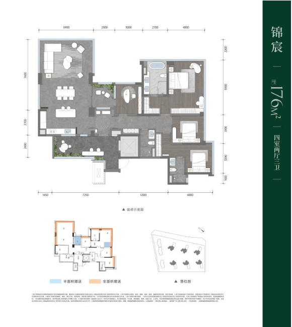 建面约176㎡四房两厅三卫
