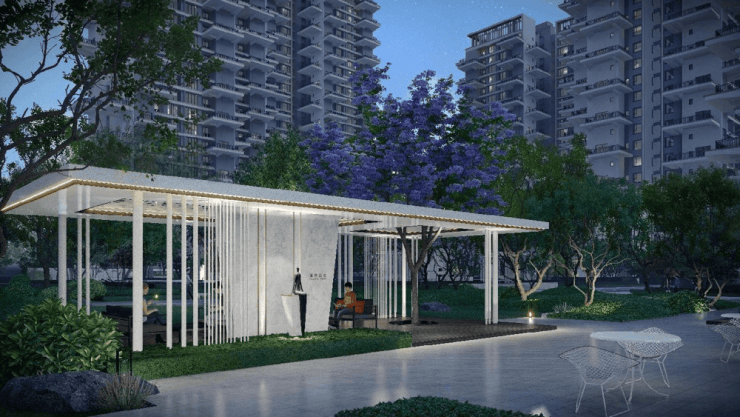 约1500㎡舒氧林下会客空间。廊下休闲+林下交流+康养植物,为业主营造健康、轻氧、乐活的生活体验。