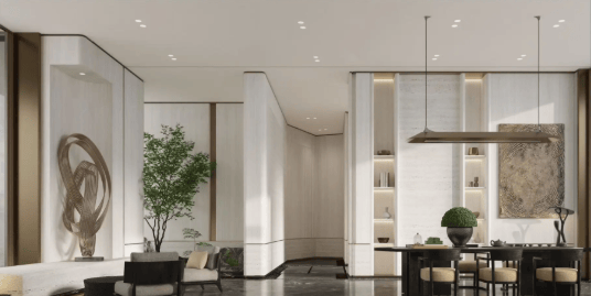 作为超400亩整体大盘规划的重要组成部分,项目自身以精致、克制的姿态呈现。通过仅3栋25层的建筑布局,以及全精装大户型的产品设定,在繁华城芯营造出一片静谧、高雅且充满艺术氛围的垂直社区。