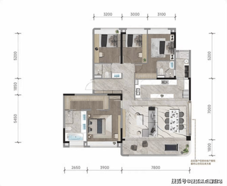A户型|洋房|建面约176㎡| 四室两厅三卫