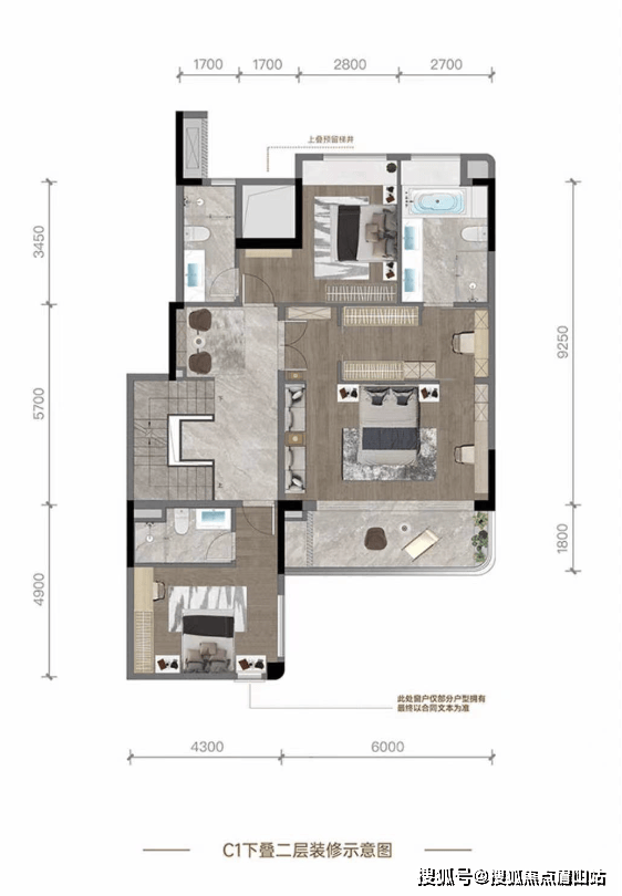 C1户型|叠拼|建面约238㎡| 四室两厅四卫