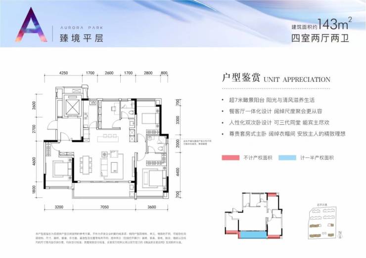 · 143㎡四房:折后均价1.7-1.85万/㎡,总价约257万