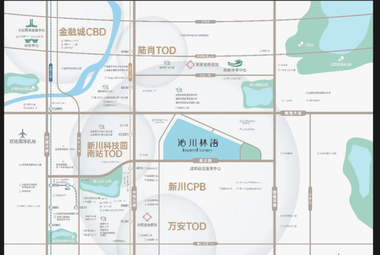 两个甲级医院:四川省中西结合医院高新分院(主体已建成,预计明年投入用)、四川省人民医院高新分院(预计明年建成)