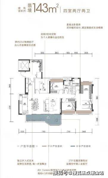 四房户型,翡镜143㎡,4室2厅2卫1厨,建筑面积143㎡