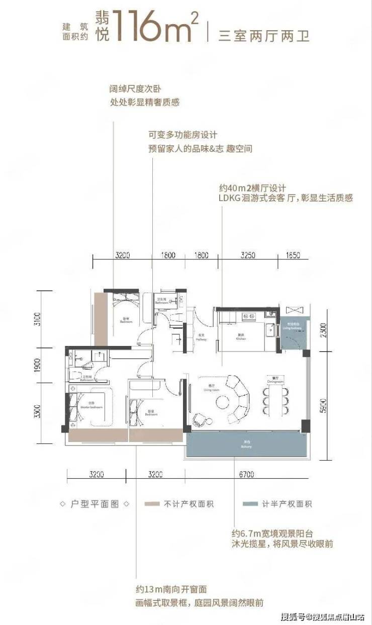 三房户型,翡悦116,3室1厅2卫1厨,建筑面积116㎡
