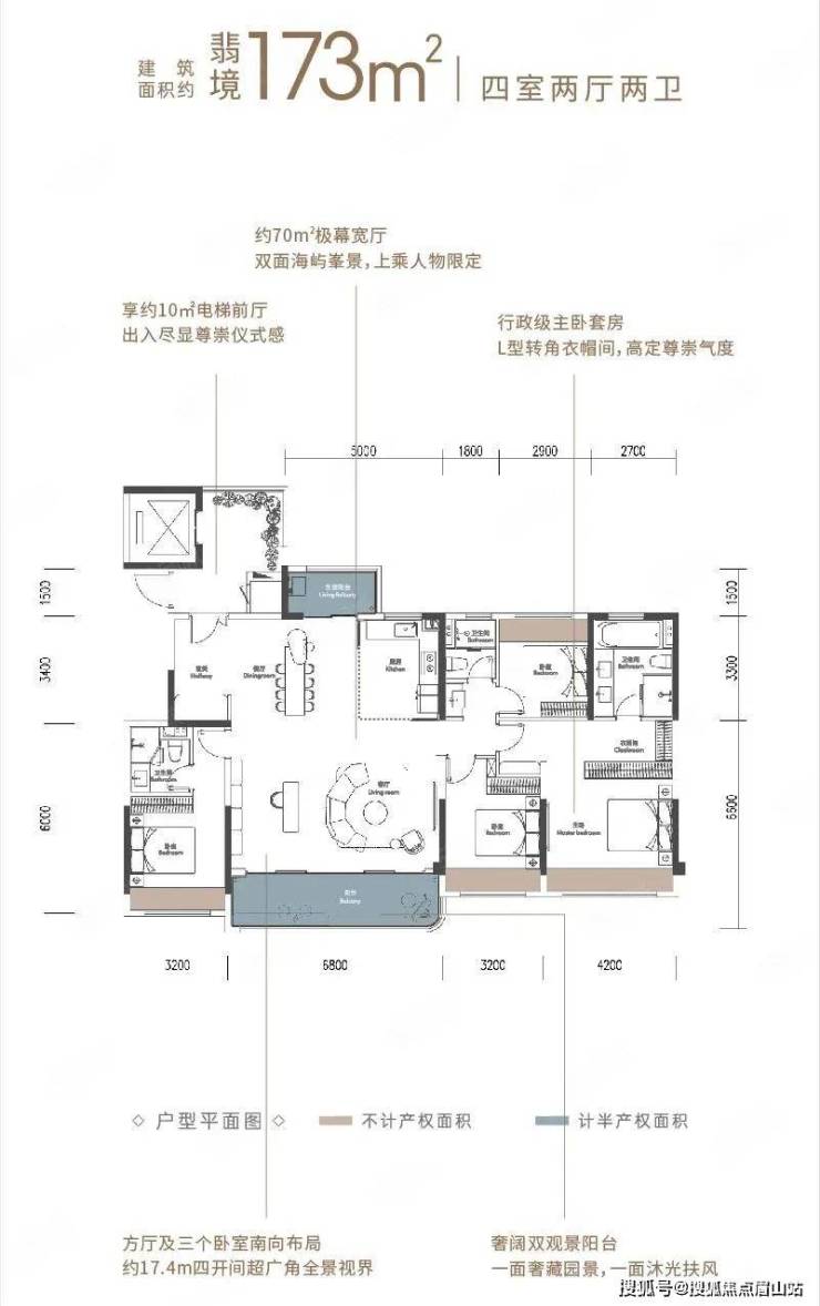 约10㎡入户空中花园,让归家与自然风景同在;270°巨幕观景阳台,窗外的每一帧都是海景大片;约64㎡LDKB峯范奢厅,超越感官的尺度界限,让此处不再只是客厅,更是人生有成的高光秀场;约35㎡的行政级主卧,以卓越奢尺带来尊崇生活私域;173㎡双中庭海景楼王,敬献人生有成。